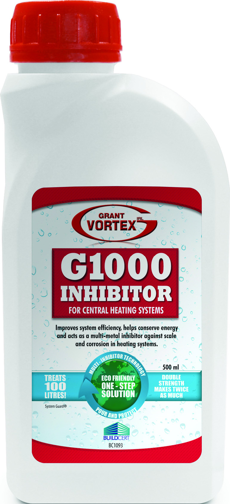 Grant G1000 heating system inhibitor, acts as a multi-metal inhibitor against scale corrosion. 500ml per 100 litres of system water in a typical 15kW system.