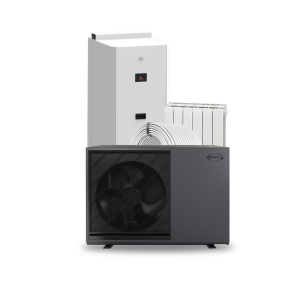 The main heat source chosen is the Grant Aerona R290 air to water air source heat pump. It is available in outputs of 4kW, 6.5kW, 9kW, 12kW and 16kW. The size of this will vary depending on the heat loss calculation that has been carried out by Grant. Flexi foot anti vibration kit has been selected to reduce any excess noise from the unit.